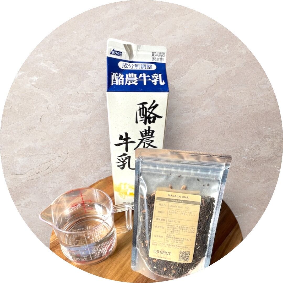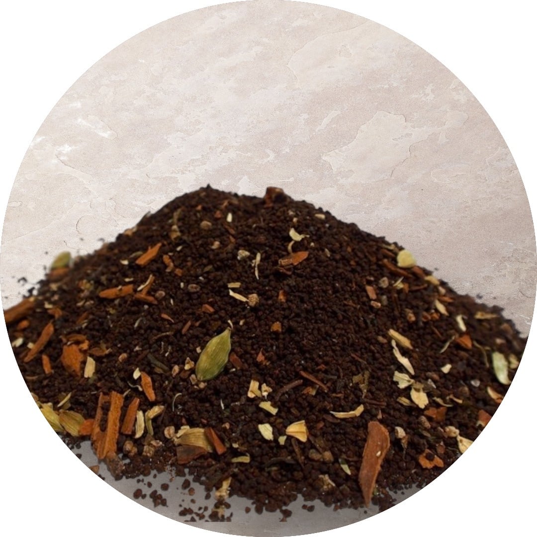 ネパール産イラムティー100%のチャイ用茶葉と砕いたシナモン、カルダモン、ジンジャーパウダーをブレンドしています。