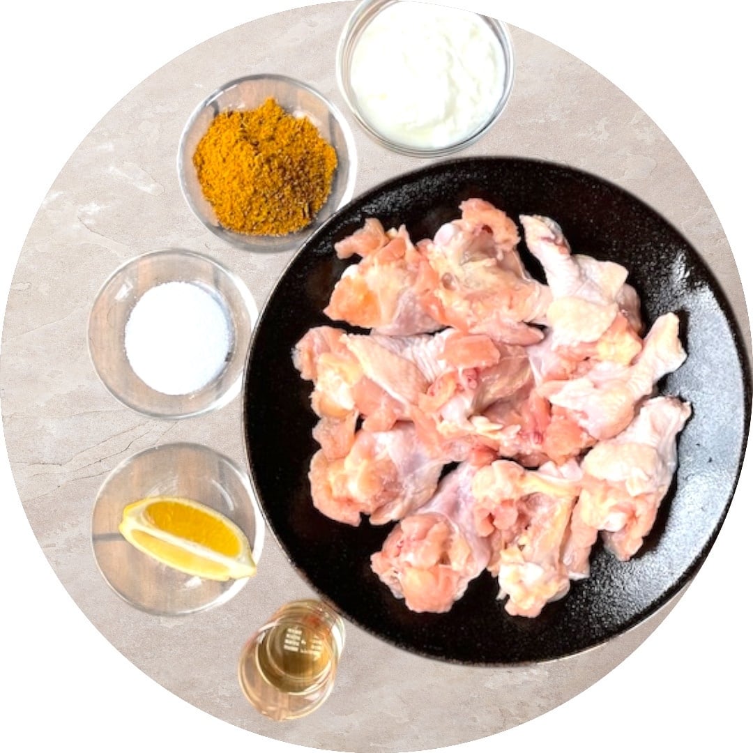 鶏肉にミックススパイスをまぶし、酢と塩でマリネしてフライパンでこんがりグリルすると、とっても美味。お醤油との相性も良いので、ご飯とお味噌汁の献立にもよく合います。