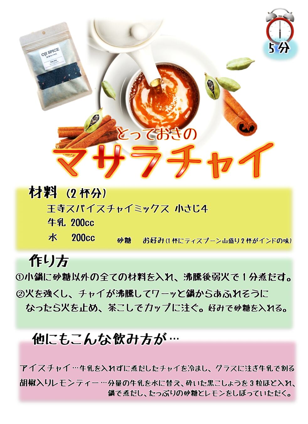 ティーミックスは、チャイ用茶葉と砕いたシナモン、カルダモンをブレンドした王寺スパイスオリジナルのティーブレンドです。